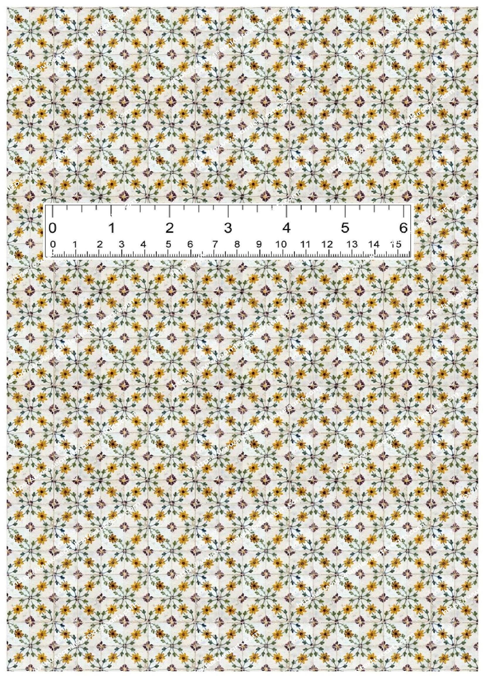 Old Damaged Floral Kitchen Wall Tile | Seamless 1:12 Scale Designs for Dollhouses & Miniature Home Decor